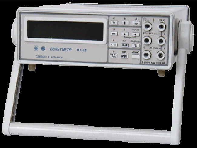 Вольтметр В7-65/1 - малогабаритный прибор среднего класса точности с расширенными функциональными возможностями и малым энергопотреблением. Предназначен для измерения постоянного напряжения, среднеквадратичного значения переменного напряжения, силы постоянного тока, силы среднеквадратичного переменного тока, электрического сопротивления постоянному току, частоты и периода. Вольтметр обеспечивает хранение до 200 результатов измерений во внутреннем ОЗУ, математическую обработку результатов измерений (10 программ), содержит цифровой фильтр.